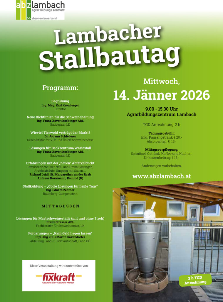 Mittwoch, 14. Jänner 2026, von 9.00 – 15.30 Uhr im Agrarbildungszentrum Lambach
